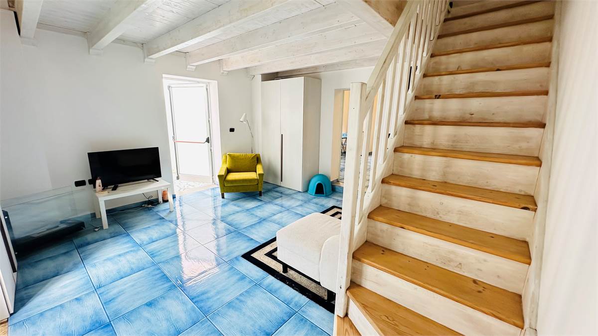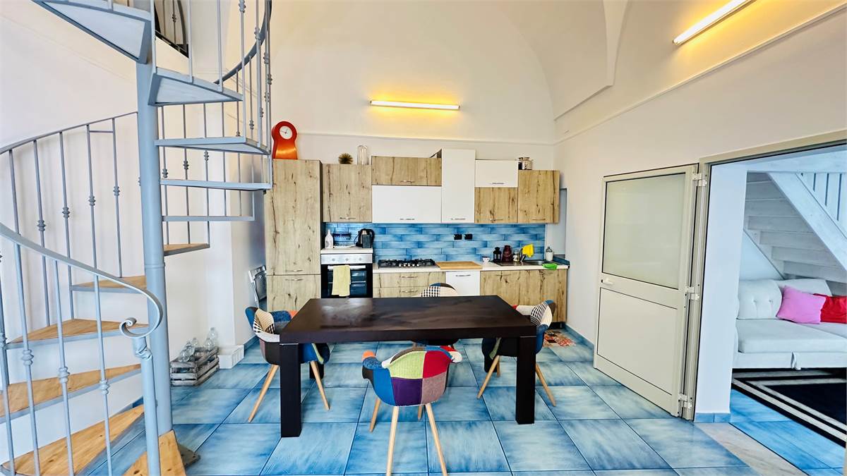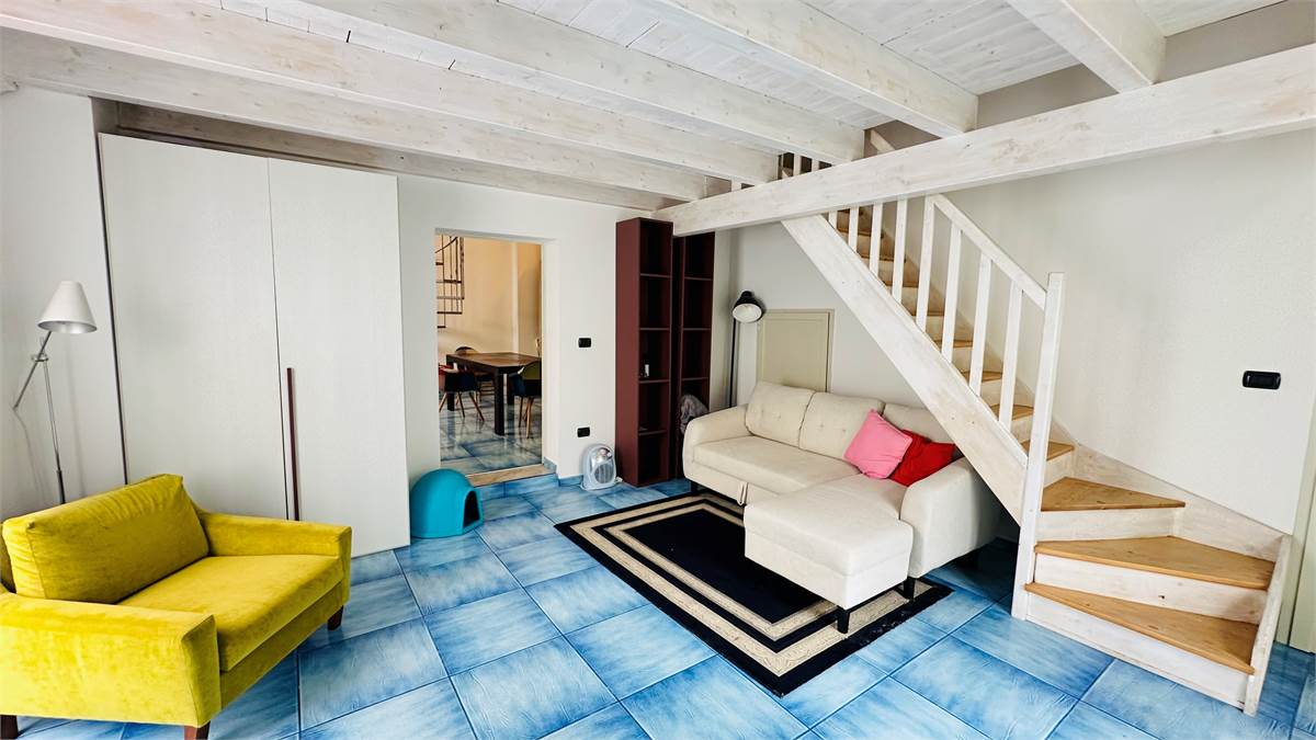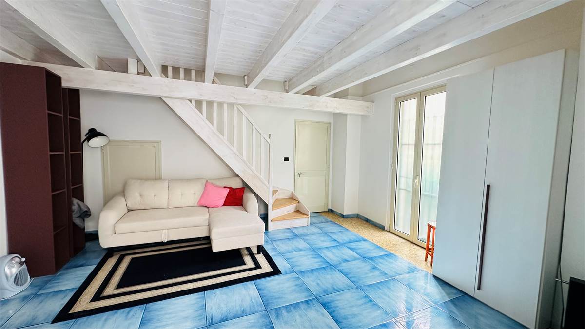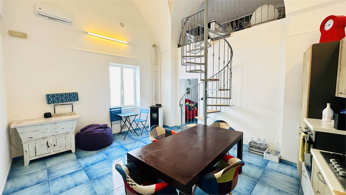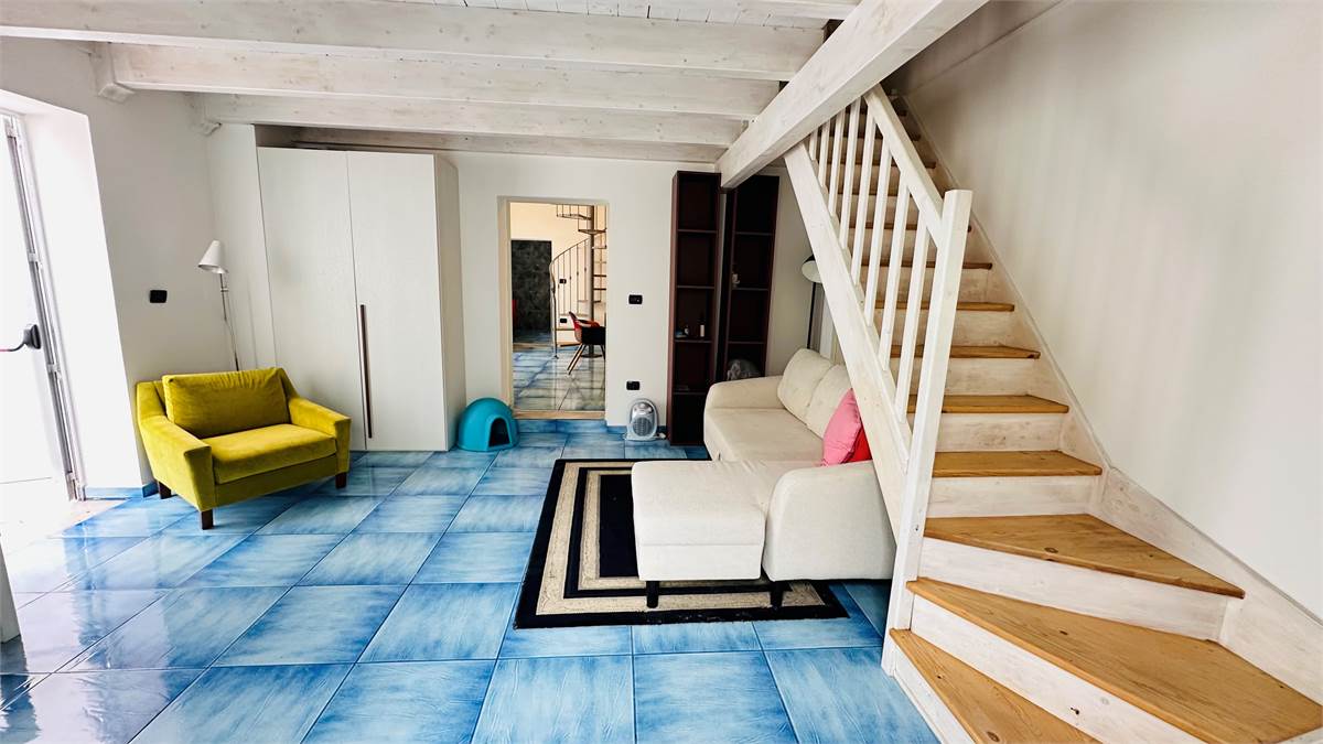 The internal staircase leads to the furnished sunroom, where there is a multipurpose room (laundry room, storage for outdoor furniture, etc.) overlooking the characteristic rooftops of the historic town center.
