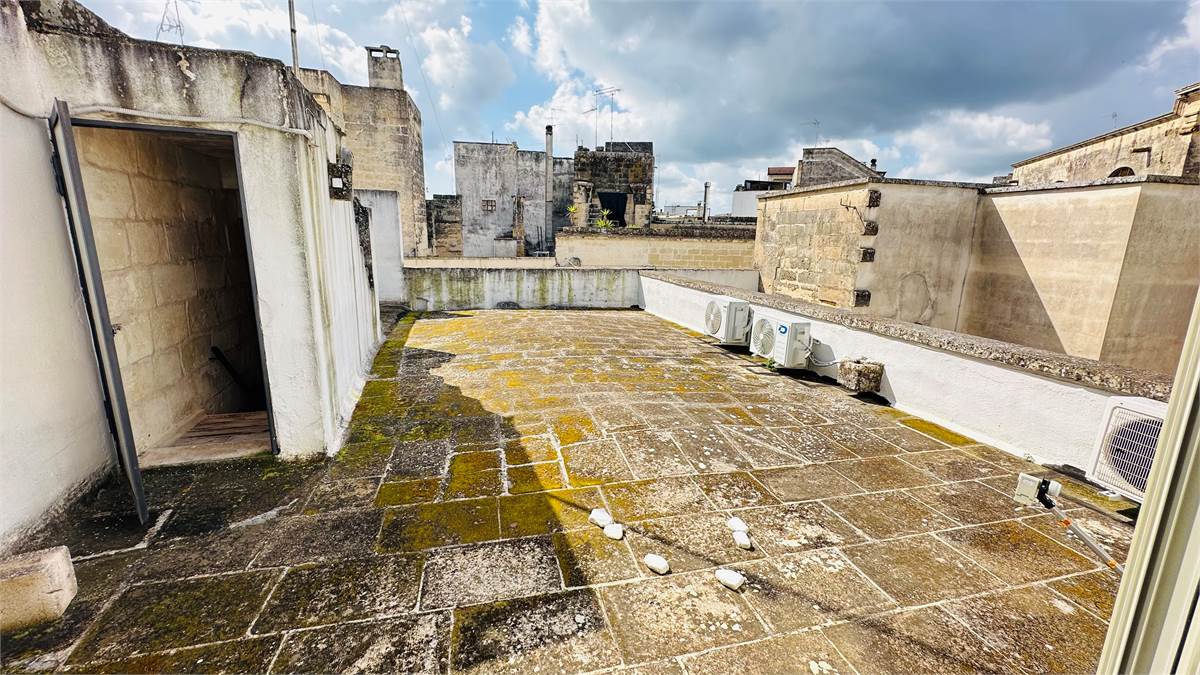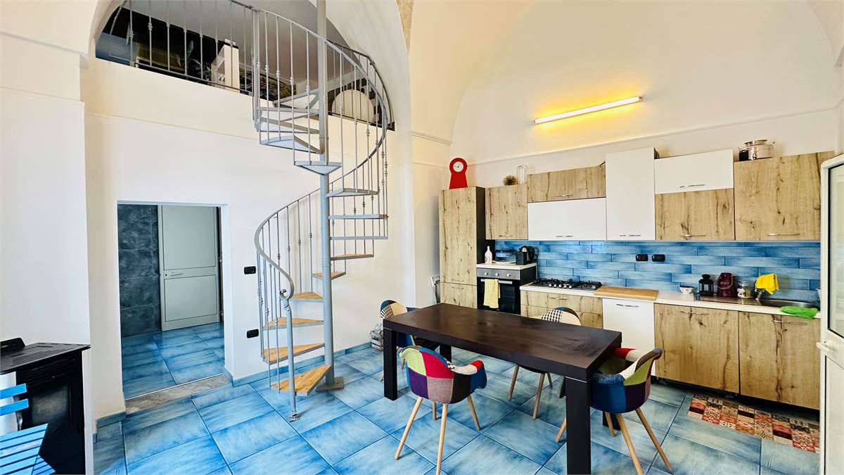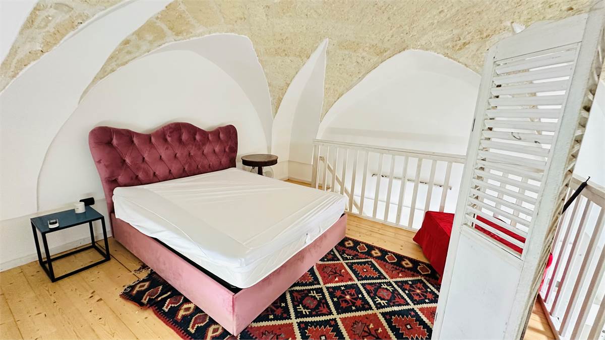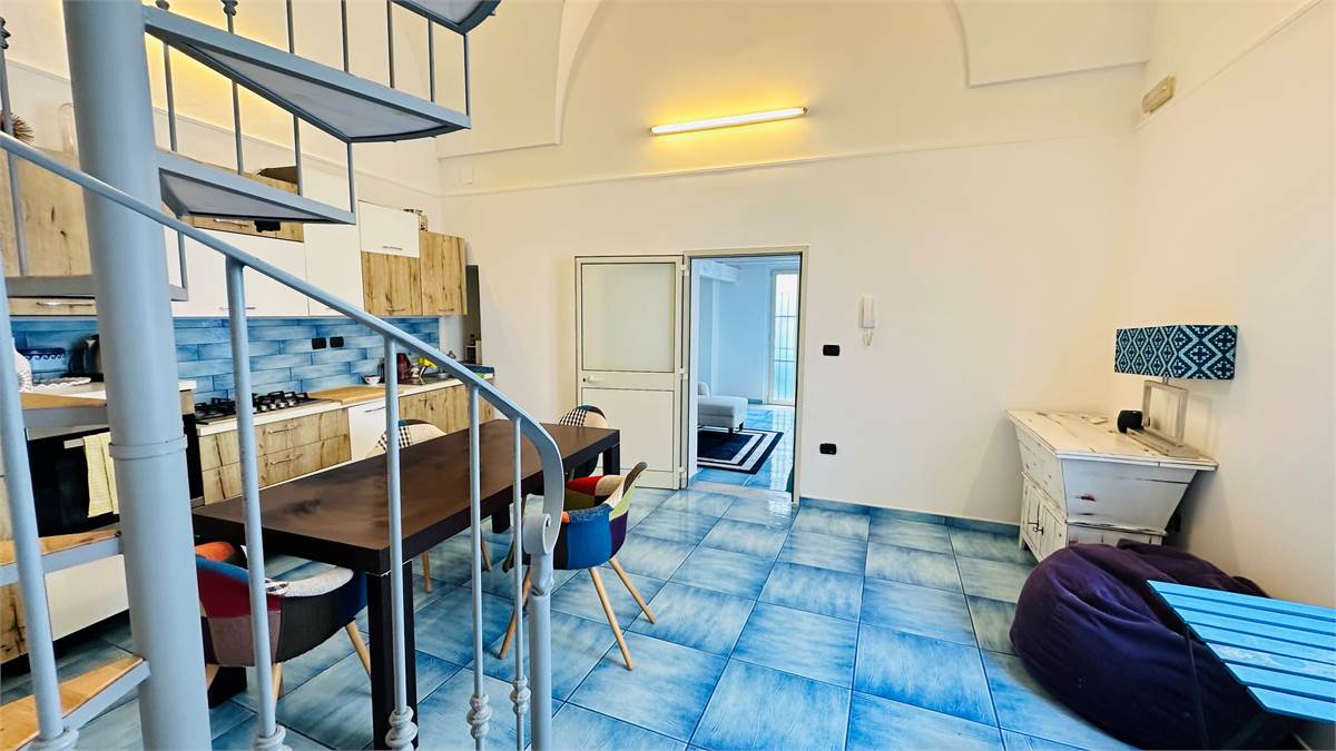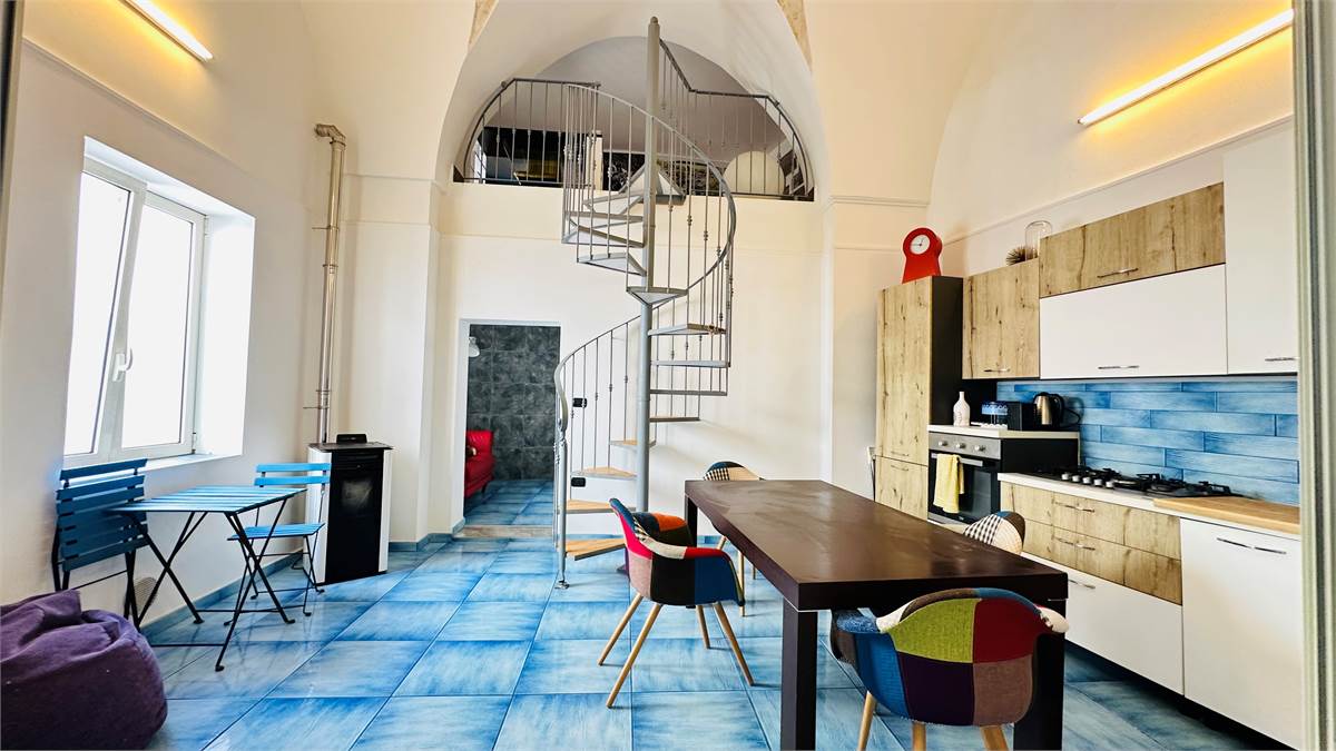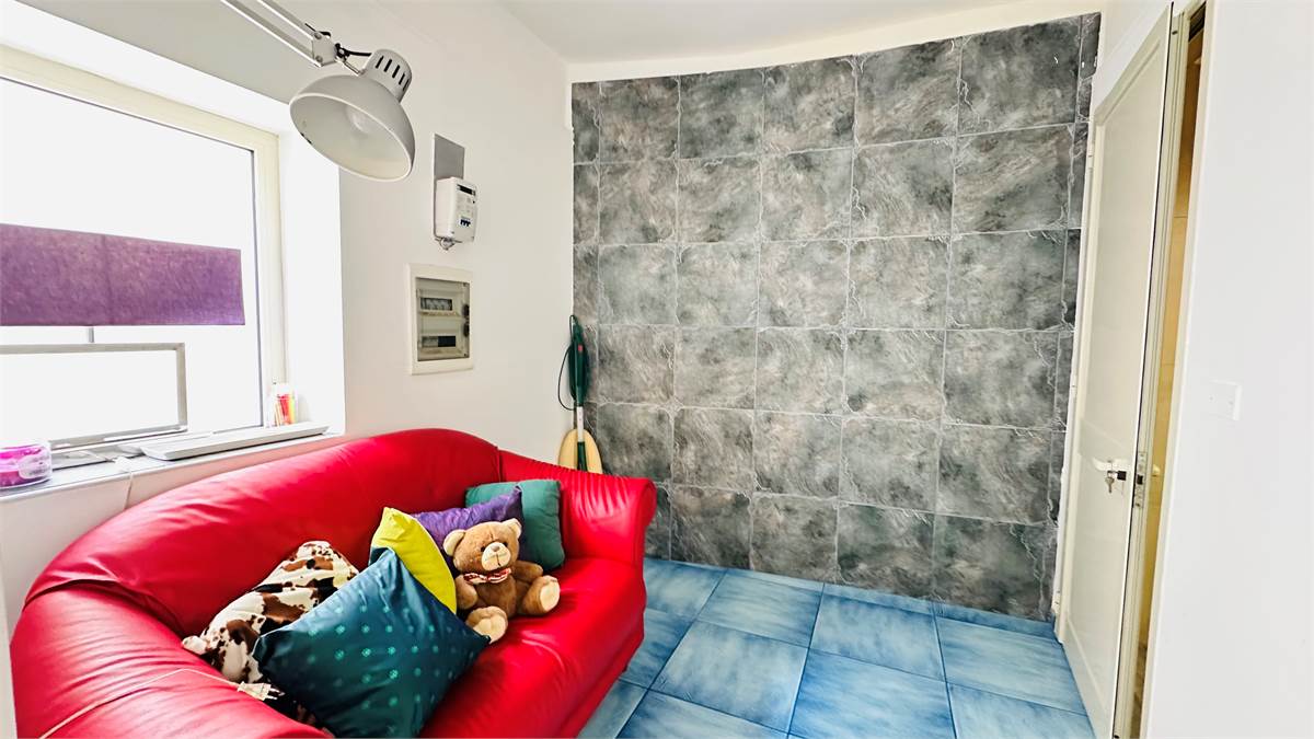 The internal staircase leads to the furnished sunroom, where there is a multipurpose room (laundry room, storage for outdoor furniture, etc.) overlooking the characteristic rooftops of the historic town center.